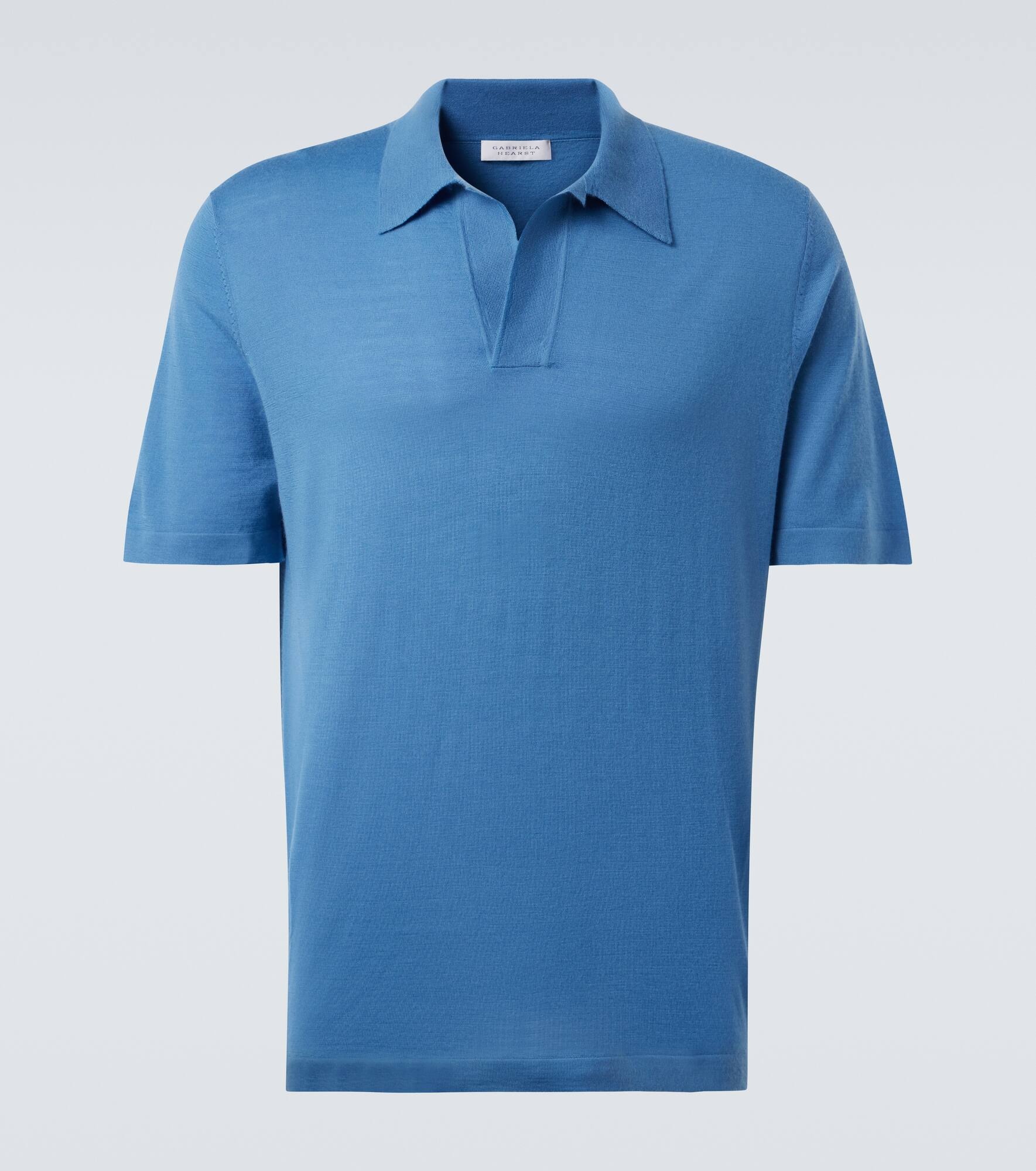 Stendhal Knit Short Sleeve Polo in Sky Cashmere