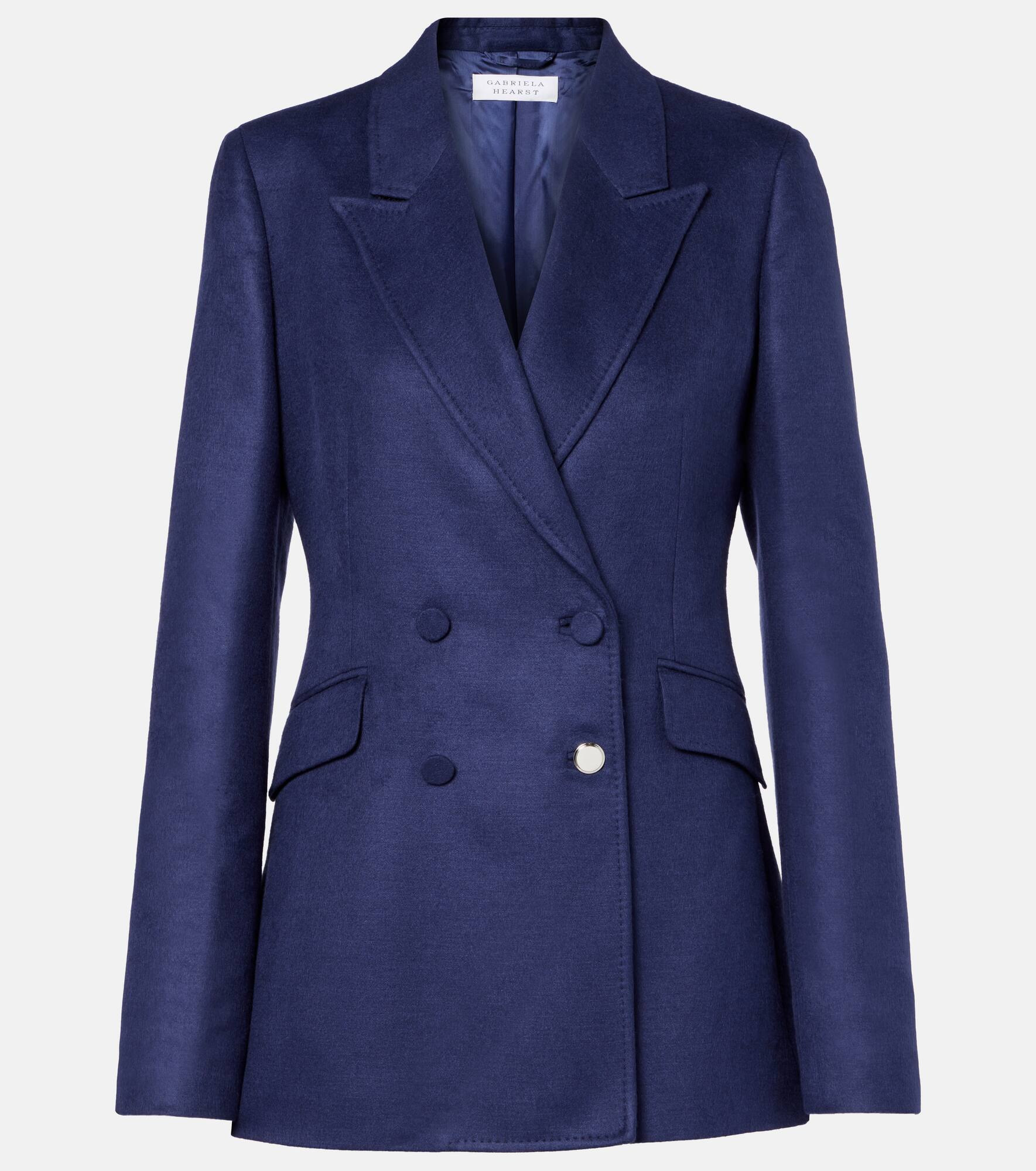 Gabriela Hearst's designs are all carefully constructed, showcasing an uncompromising dedication to quality and craft. The Stephanie blazer is made in Italy with pure silk. The design is finished with shoulder pads and flap buttons. Product Details - Material: 100% silk - Care instructions: dry clean - Made in Italy - Designer color name: Navy - Item color: blue - Lining: 100% viscose - Fully lined - Collar: notch neck - Closure: double-breasted (four buttons) - Pockets: flap pockets - Vent: single - Item number: P01077140 Size & Fit - True to size - Shoulder pad inserts - Cinched waist - Non-stretchy fabric - Falls below the hip - The model seen in the picture is 178cm-5'10" and wearing a size IT 40