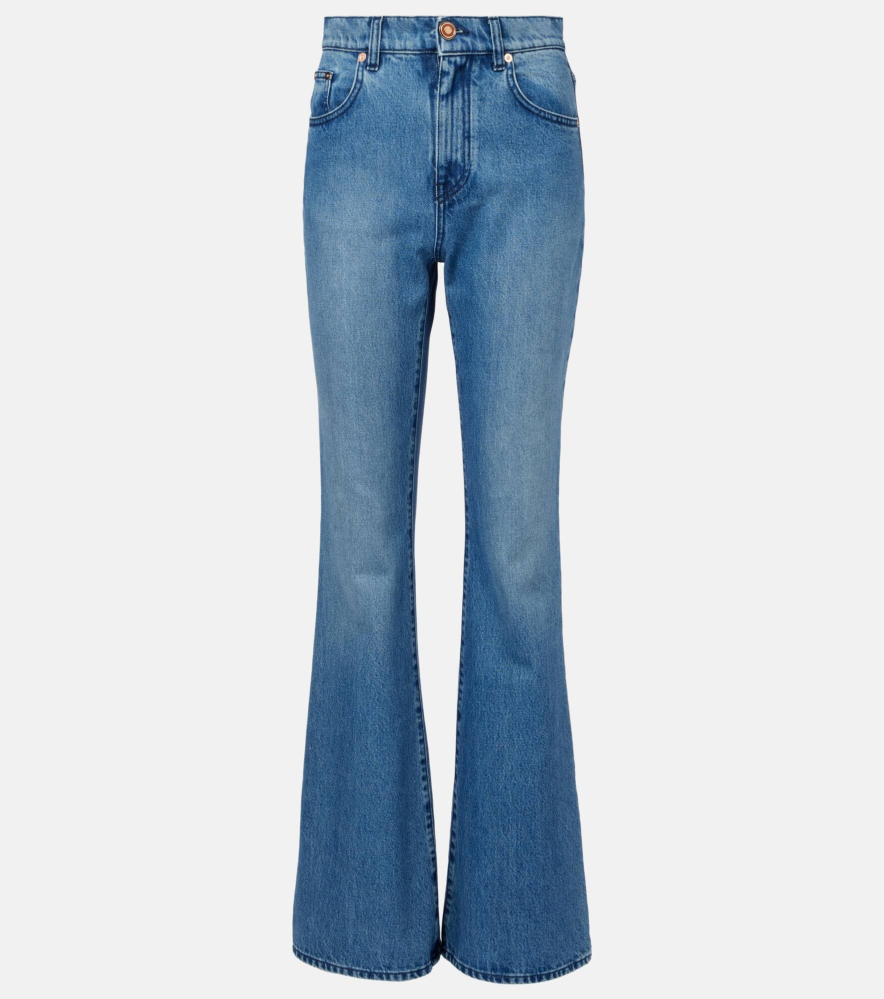 Gabriela Hearst's designs are all carefully constructed, showcasing an uncompromising dedication to quality and craft. The Willa jeans are made to a high-rise bootcut silhouette with custom removable wood-inlaid brass buttons at the waist. Product Details - Material: 100% cotton - Care instructions: dry clean - Made in Italy - Designer color name: Uruguayan Blue - Item color: blue - Pockets: five pockets - Fit: bootcut - Closure: zip and button fastening - Contains non-textile parts of animal origin - Item number: P01035857 Size & Fit - True to size - Non-stretchy fabric - Bootcut - High-rise - The model seen in the picture is 178cm-5'10" and wearing a size 26