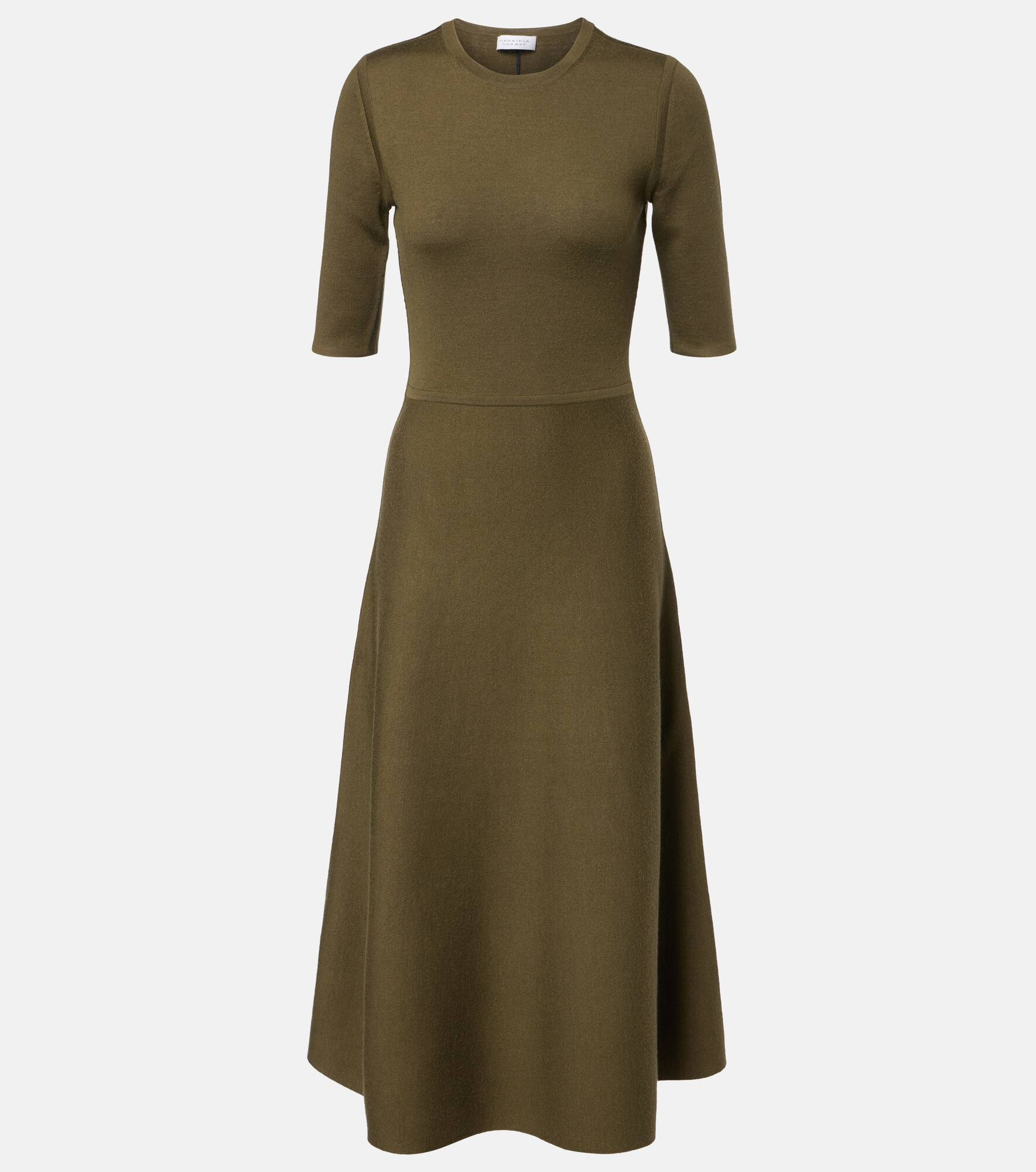 Gabriela Hearst's designs are all carefully constructed, showcasing an uncompromising dedication to quality and craft. A case in point, this midi dress is cut from a sumptuous blend of wool, cashmere, and silk into a classic A-line silhouette. Product Details - Material: 80% wool, 10% cashmere, 10% silk - Care instructions: dry clean - Made in China - Designer color name: Olive - Item color: green - Collar: crewneck - Item number: P01077157 Size & Fit - True to size - Cinched waist - Slightly stretchy fabric - The model seen in the picture is 178cm-5'10" and wearing a size XS