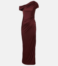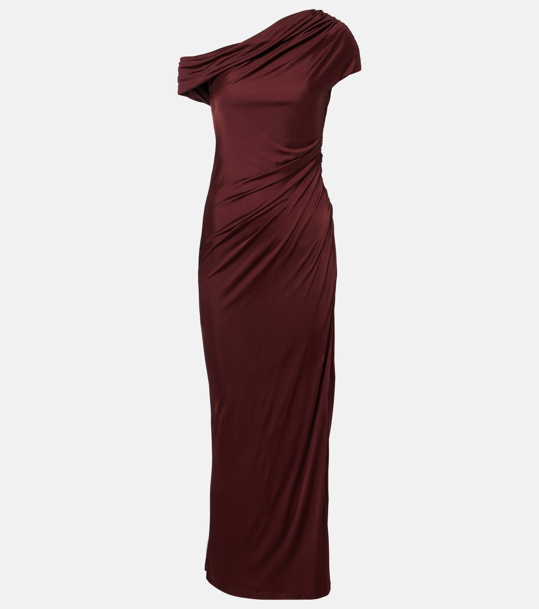 Best-known for its modern take on eveningwear, women-run Galvan covers all the bases for a polished wardrobe. This maxi dress is crafted from fluid jersey, and the silhouette is finished with an asymmetric neckline and elegant draping. Product Details - Material: 87% polyamide, 13% elastane - Care instructions: dry clean - Made in the UK - Designer color name: Mahogany - Item color: burgundy - Material II: 100% viscose - Item number: P01069766 Size & Fit - True to size - Cinched waist - Non-stretchy fabric - The model seen in the picture is 178cm-5'10" and wearing a size FR 36