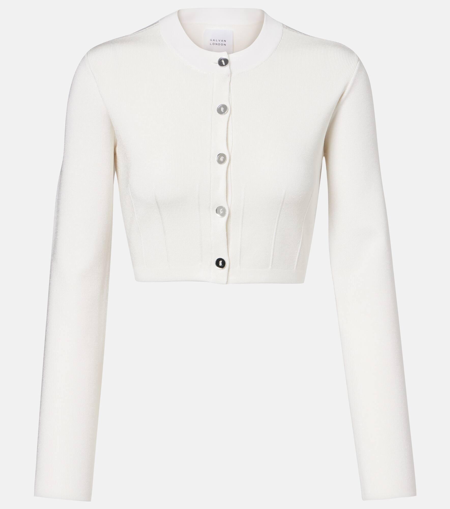 Best-known for its modern take on eveningwear, women-run Galvan covers all the bases for a polished wardrobe. The Atalanta cardigan is cut to a cropped silhouette and features silver-toned buttons for a refined finish. Product Details - Material: 100% viscose - Care instructions: dry clean - Made in China - Designer color name: White - Item color: white - Closure: buttoned front - Collar: crewneck - Item number: P01048671 Size & Fit - True to size - Straight fit - Stretchy fabric - Cropped - The model seen in the picture is 178cm-5'10" and wearing a size XS
