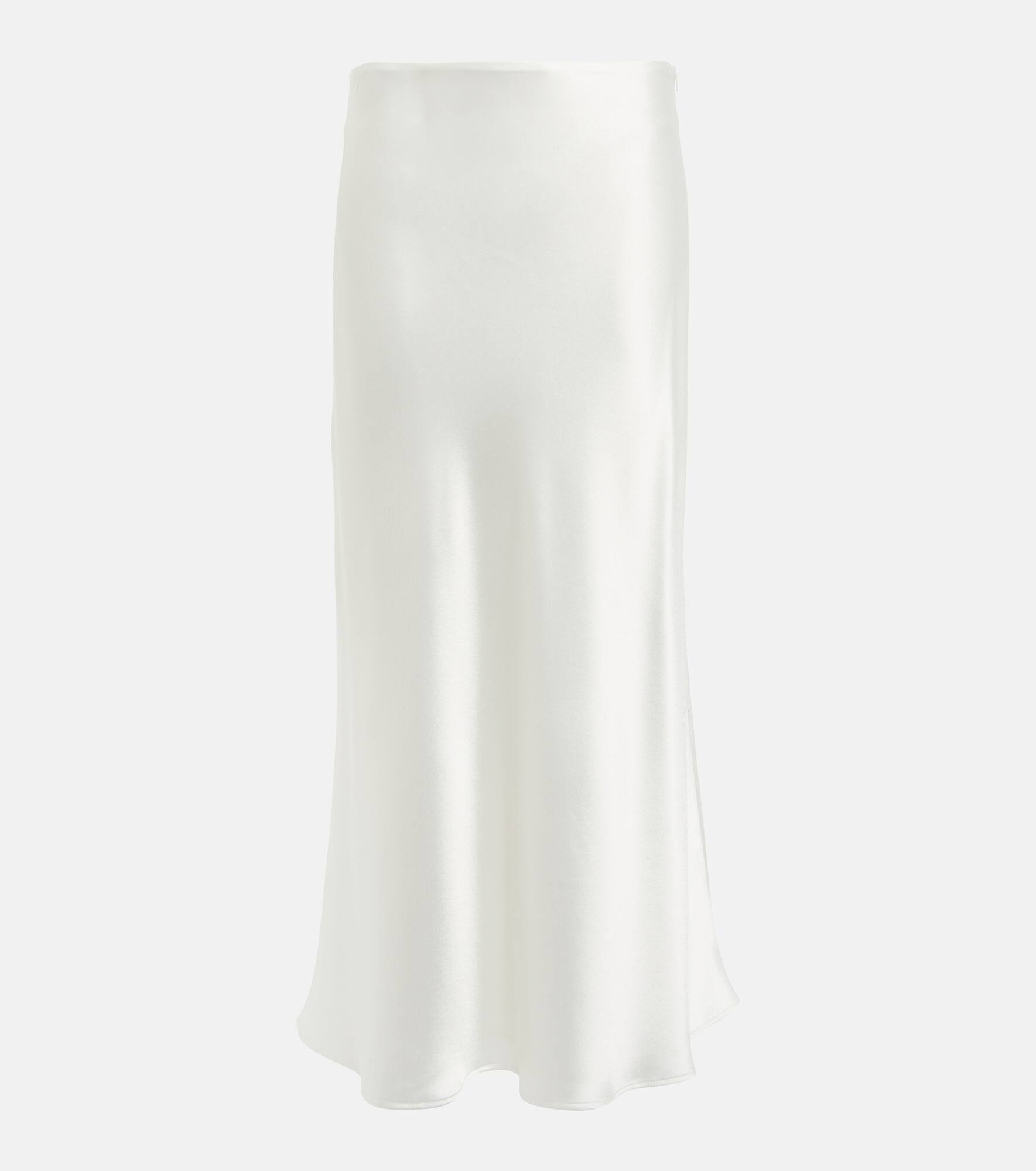 Look to Galvan for elegant and minimalistic wedding designs such as this midi skirt. Made from lustrous satin, the high-rise style has a slip silhouette that falls into a fluted hem for a flattering look. Product Details - Closure: zipped side, invisible zipper - Lining: fully lined, 97% polyester, 3% elastane - Material: 20% polyester, 80% triacetate - Designer color name: White - Made in Poland - Care instructions: dry clean - Item number: P00739170 Size & Fit - True to size - Mid-weight material - The model seen in the picture is 178cm-5'10" and wearing a size FR 36