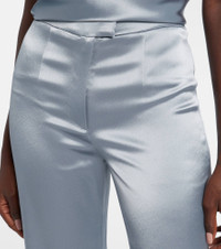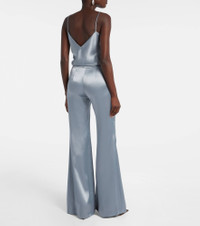Paired with a coordinating blazer, Galvan's Julianne pants create an effortlessly graceful head-to-toe look. This design showcases impeccable tailoring, is cut from liquid satin, and features a zipper-and-hook fastening and flared legs. Product Details - Material: 80% triacetate, 20% polyester - Care instructions: dry clean - Made in Bulgaria - Designer color name: Dove Blue - Item color: blue - Closure: zip and hook fastening - Item number: P01048707 Size & Fit - True to size - Non-stretchy fabric - Wide-leg - High-waisted - The model seen in the picture is 178cm-5'10" and wearing a size FR 36