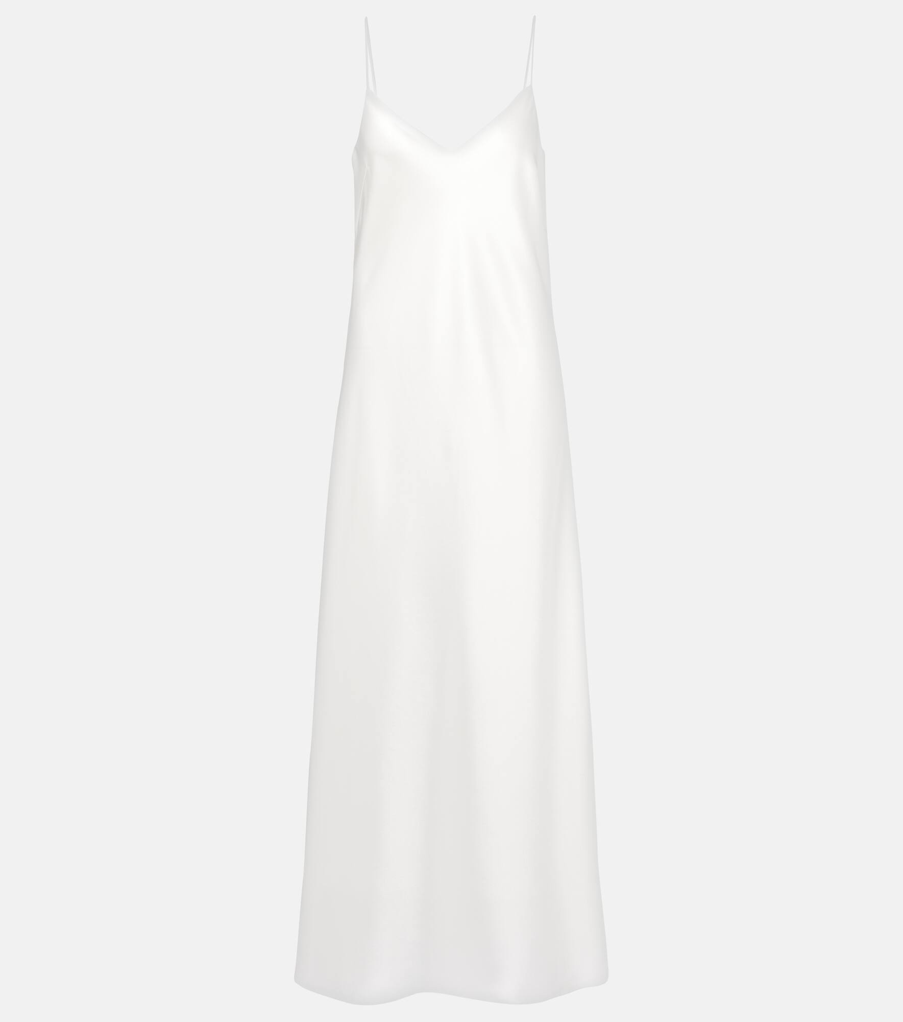 Best-known for its modern take on eveningwear, women-run Galvan covers all the bases for a polished wardrobe. This bias-cut satin slip dress features an elegant V-neckline and floor-length hem, perfect for elegant summer evenings. Product Details - Material: 80% triacetate, 20% polyester - Care instructions: dry clean - Made in Poland - Designer color name: Off White - Item color: white - Lining: 94% polyester, 6% elastane - Item number: P01004189 Size & Fit - True to size - Low back - Cinched waist - Non-stretchy fabric - The model seen in the picture is 178cm-5'10" and wearing a size FR 36