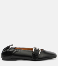The Butterfly Mary Jane flats from Ganni blend a classic design with a modern edge. This pair features silver-toned buckles and a practical ruffled back with pull straps for easy wearability. Product Details - Upper: polyurethane, polyester (recycled), cotton - Lining: faux leather - Sole: faux leather insole, rubber sole - Toe shape: square toe - Made in Brazil - Includes: dust bag, shoe box - Designer color name: Black - Item color: black - Hardware color: silver - Item number: P01043458 Size & Fit - True to size - Half sizes please take the next size down - European sizes - 1,5cm-0.5" heel (size EU 38)