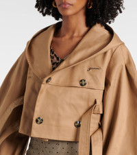 Product Details - Material: 100% cotton (organic) - Care instructions: dry clean - Made in China - Designer color name: Tiger's Eye - Closure: buttoned front, buckle fastening - Item number: P01034206 Size & Fit - True to size - Dropped shoulders - Designed for a loose fit - Adjustable at the waist - Non-stretchy fabric - Slightly cropped - The model seen in the picture is 178cm-5'10" and wearing a size DT 34