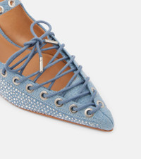 Embellished lace-up denim mules