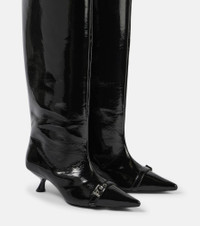 Eyelets faux leather knee-high boots