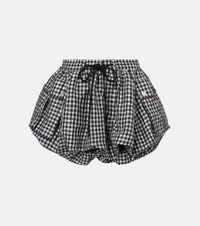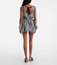 Copenhagen-based brand Ganni reshapes the meaning of Scandinavian style with its whimsy and playful approach to design. This bubble miniskirt is crafted from taffeta and boasts a gingham print. Pair with the matching top. Product Details - Material: 100% polyester (recycled) - Care instructions: dry clean - Made in Turkey - Designer color name: Black - Item color: black - Lining: 100% cotton - Elasticated drawstring waist - Pockets: flap pockets - Hardware color: silver - Item number: P01076782 Size & Fit - True to size - Elasticated waist - Adjustable at the waist - Non-stretchy fabric - The model seen in the picture is 178cm-5'10" and wearing a size DE 34