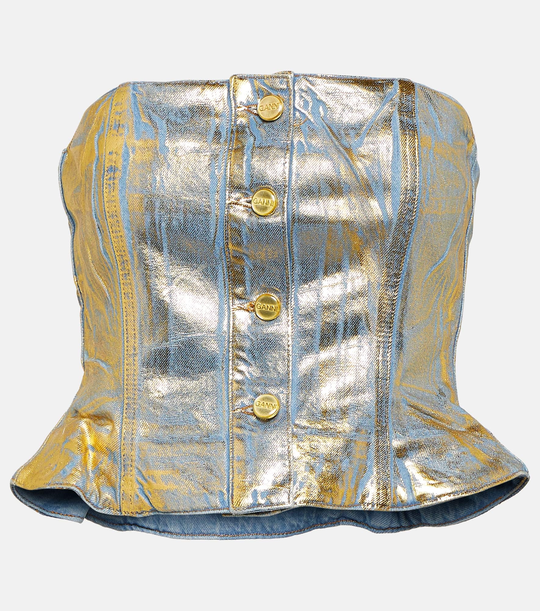 Product Details - Material: 100% organic cotton - Care instructions: dry clean - Made in Turkey - Designer color name: Gold - Closure: buttoned front - Item number: P00884416 Size & Fit - True to size - Strapless - Fitted - Non-stretchy fabric - Cropped - The model seen in the picture is 178cm-5'10" and wearing a size DT 34