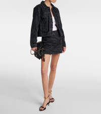 Black Lazer Denim Miniskirt