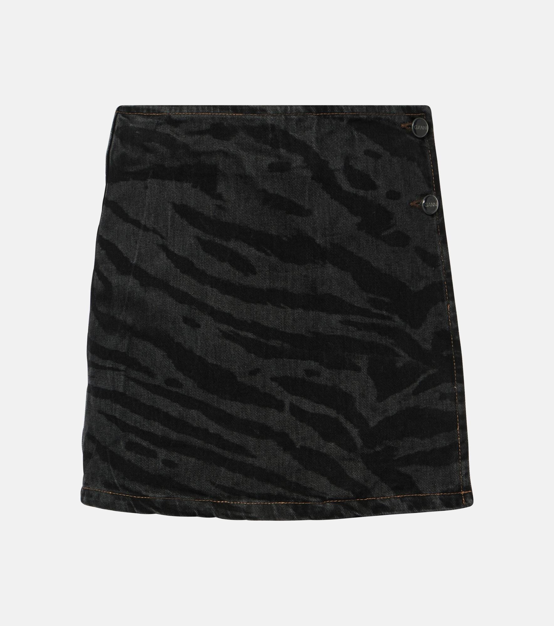 High-rise denim wrap skirt