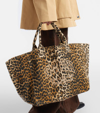Large leopard-print canvas tote bag