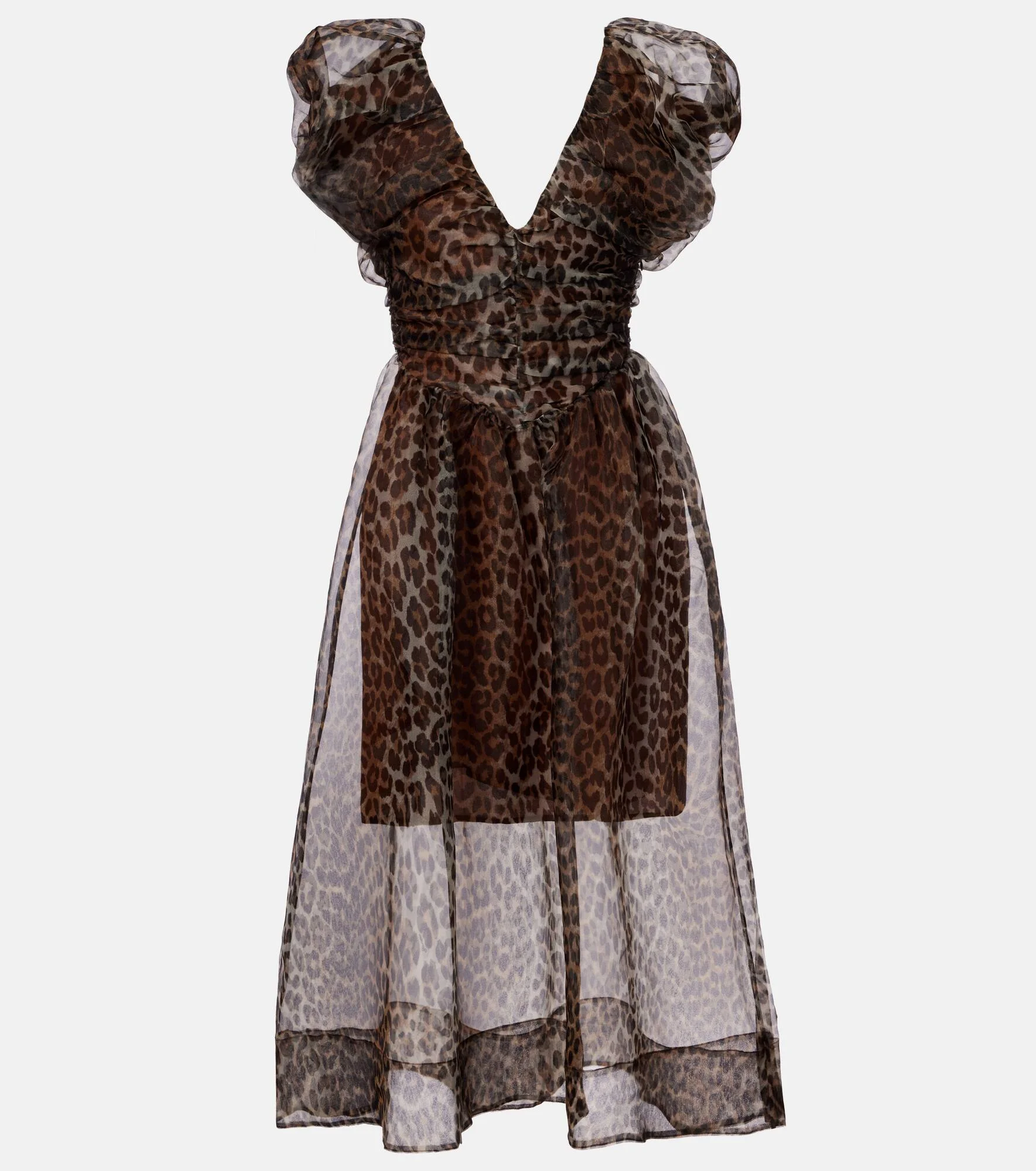 Leopard-print organza midi dress
