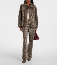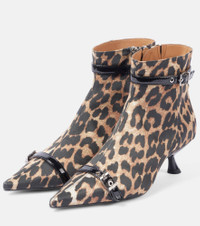 LEOPARD SATIN EYELETS KITTEN HEEL BOOTS