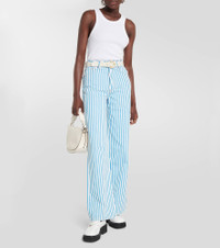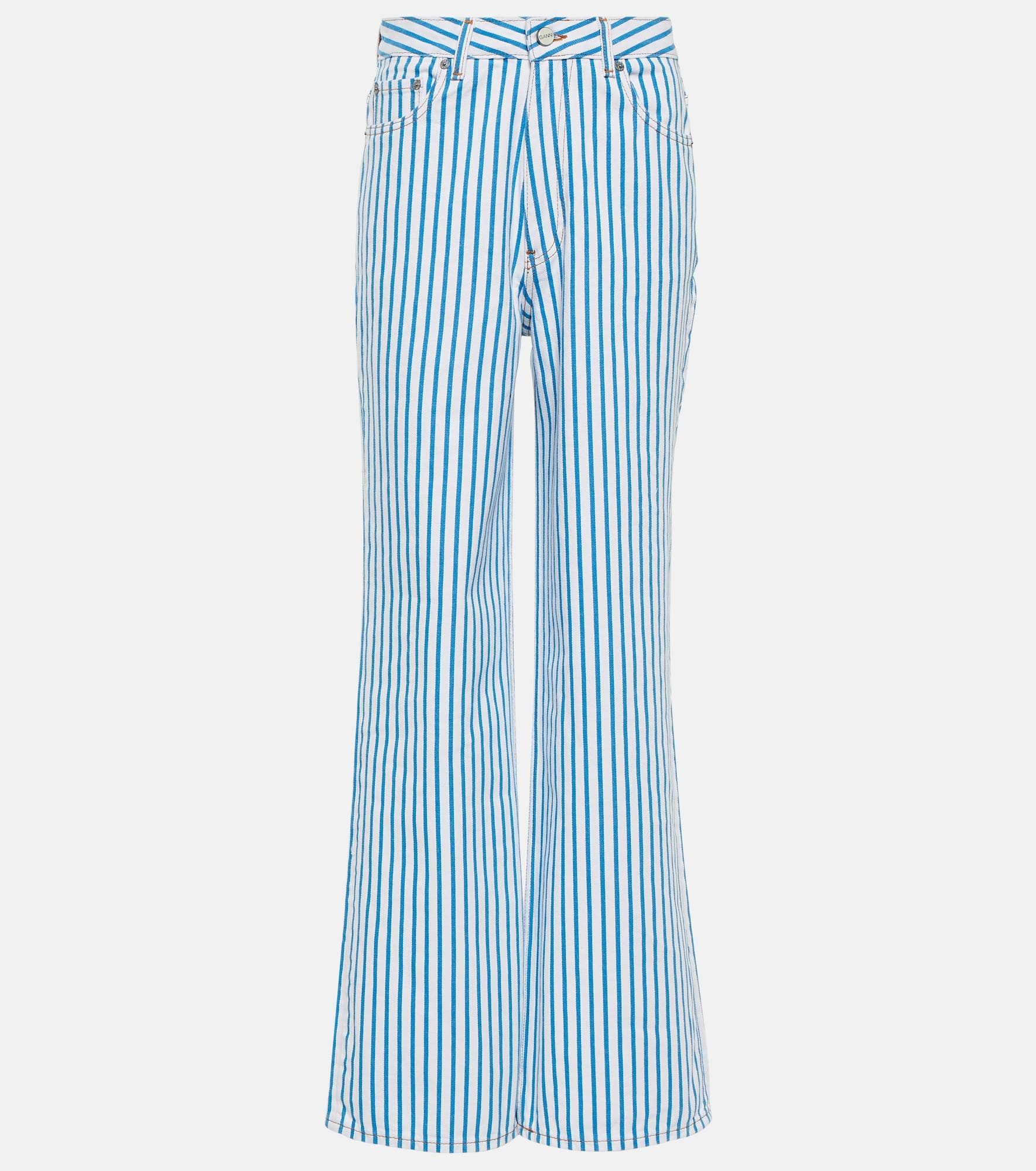 Copenhagen-based brand Ganni reshapes the meaning of Scandinavian style with its whimsy and playful approach to design. These striped jeans are made from pure cotton denim and come with a high-rise straight-leg silhouette. Product Details - Pockets: five pockets - Material: 100% cotton - Made in Turkey - Designer color name: Bright White - Care instructions: machine wash at 30 degrees - Closure: zipper fly, button fastening - Item number: P00828460 Size & Fit - Fits small to size - we recommend trying one size larger - Mid-weight material - Non-stretchy fabric - Straight leg - High-rise - The model seen in the picture is 178cm-5'10" and wearing a size 27