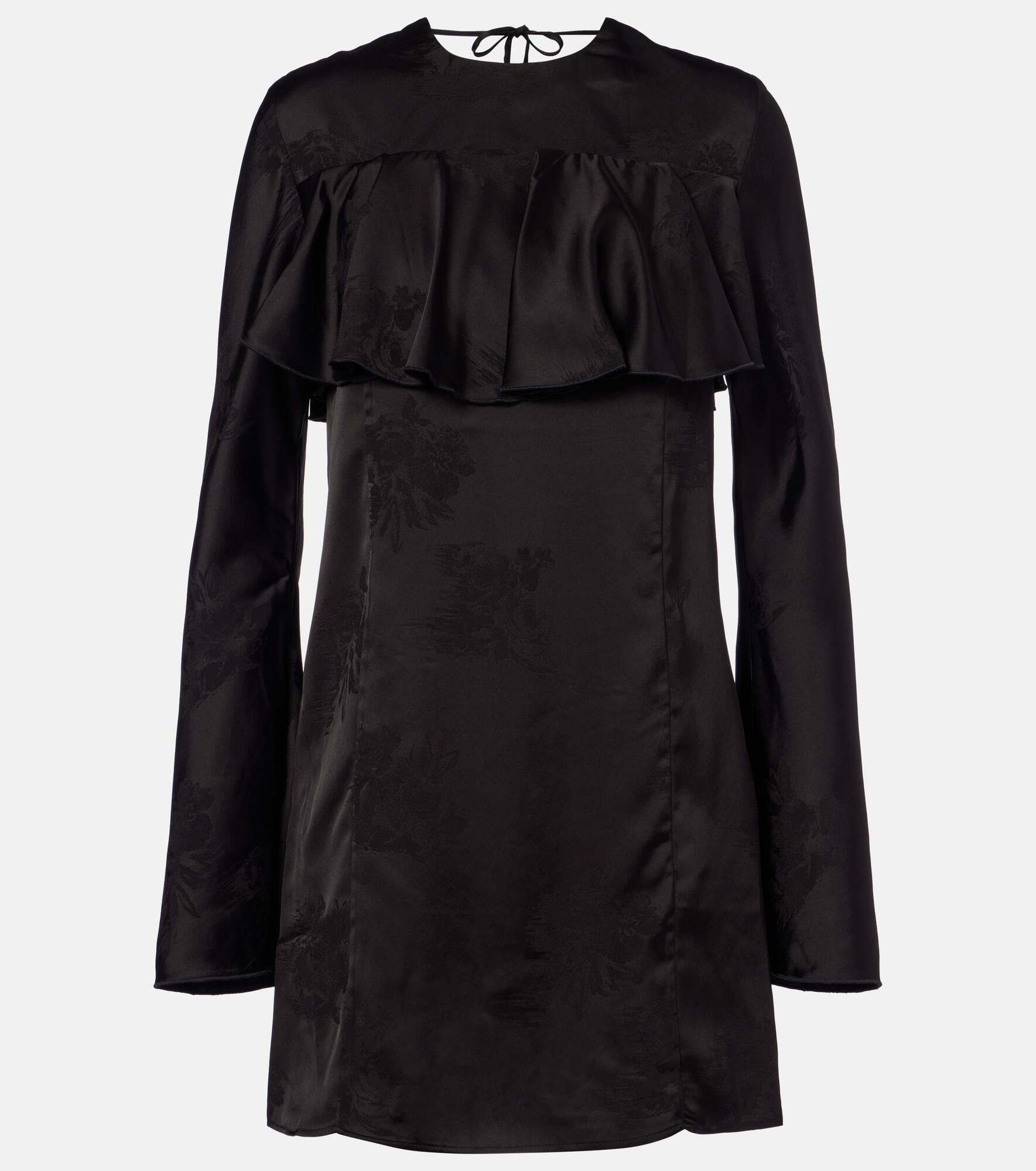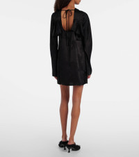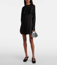This Ganni minidress embodies the brand’s signature Scandinavian minimalism. The design is defined by chic ruffled accents, long sleeves, and an alluring open back with adjustable self-ties. Product Details - Material: 75% acetate, 25% polyester - Care instructions: machine wash at 30 degrees - Made in China - Designer color name: Black - Item color: black - Self-tie neck - Item number: P01090607 Size & Fit - True to size - Low back - Straight fit - Non-stretchy fabric - The model seen in the picture is 178cm-5'10" and wearing a size DE 34