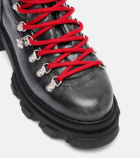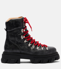Inspired by a mountain style, these Ganni combat boots feature a classic lace-up silhouette. The pair features the signature Butterfly charms and sits atop platform soles with cleats for enhanced grip. Product Details - Upper: faux leather - Lining: faux leather - Sole: faux leather insole, rubber sole - Toe shape: round toe - Made in Portugal - Includes: shoe box, dust bag, extra laces - Designer color name: Ebony - Item color: black - Closure: lace-up - Item number: P01101069 Size & Fit - True to size - Half sizes please take the next size up - European sizes - 5,5cm-2" heel (size EU 38) - 4,5cm-2" platform (size EU 38)