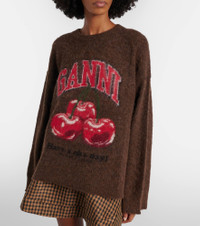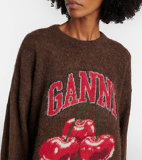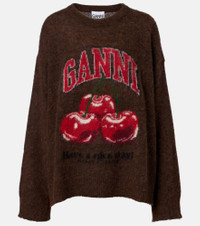 Copenhagen-based brand Ganni reshapes the meaning of Scandinavian style with its whimsy and playful approach to design. This sweater is made from an alpaca and wool-blend yarn and features a printed logo graphic. Product Details - Material: 50% alpaca wool, 28% polyamide, 22% wool - Care instructions: hand wash - Made in Romania - Color: brown - Designer color name: Chicory Coffee - Item color: brown - Collar: crewneck - Item number: P01135202 Size & Fit - True to size - Dropped shoulders - Oversized - Slightly stretchy fabric - Falls below the hip - The model seen in the picture is 178cm-5'10" and wearing a size XS