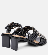 Product Details - Upper: faux leather - Lining: faux leather - Sole: faux leather insole, rubber sole - Toe shape: round open toe - Made in Portugal - Includes: dust bag, shoe box - Designer color name: Black - Item number: P00929240 Size & Fit - True to size - Wide - Half sizes please take the next size up - European sizes - 7,5cm-3" heel (size EU 38)
