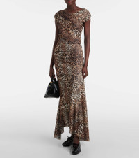 Ruched leopard-print mesh maxi dress