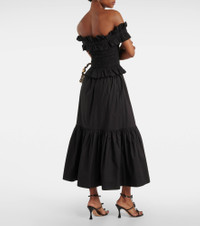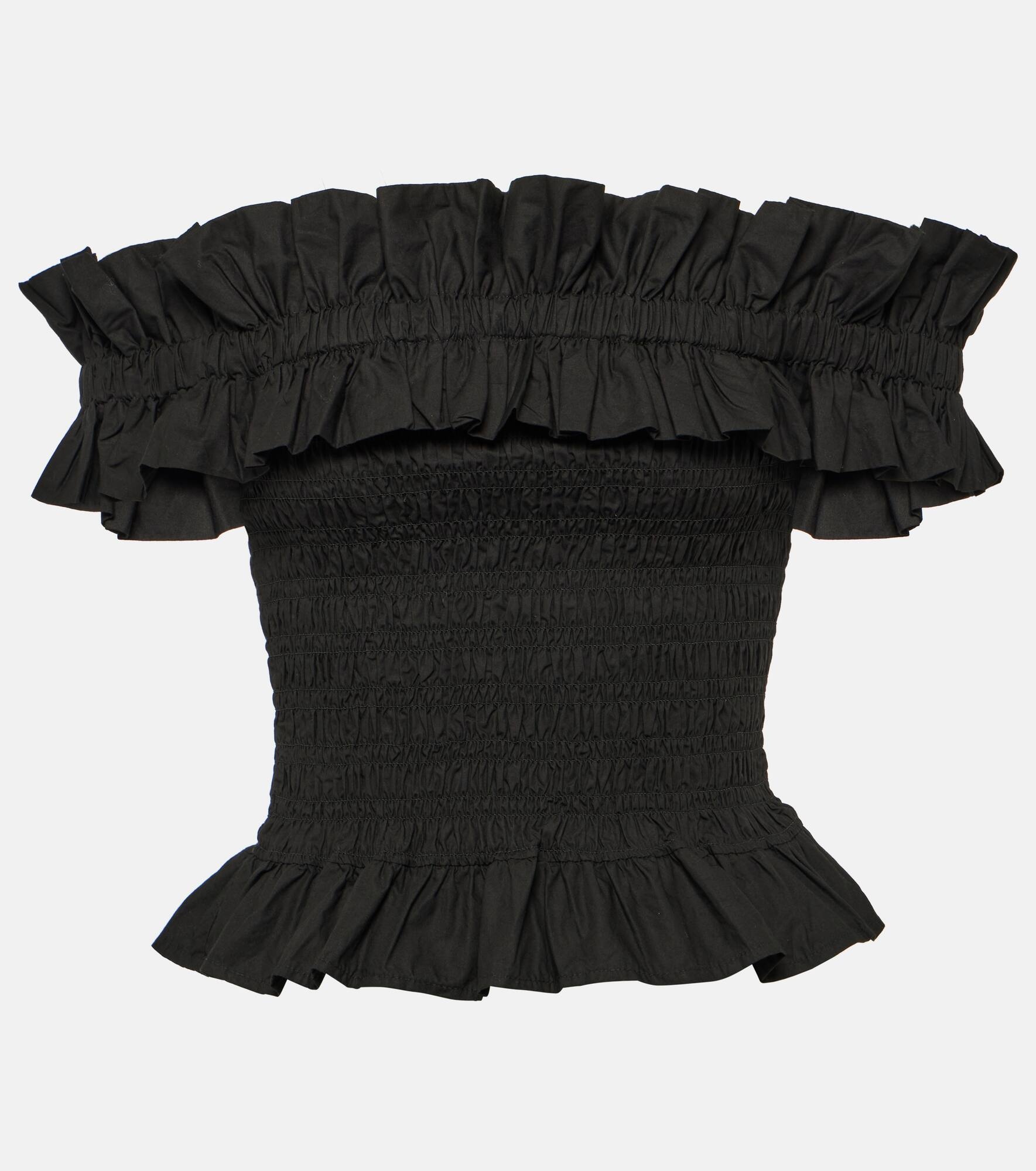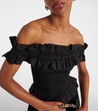 Smocked off-shoulder cotton poplin top