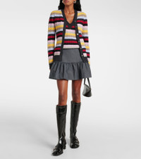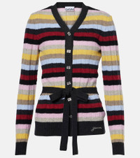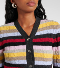 Striped cable-knit wool-blend cardigan
