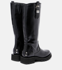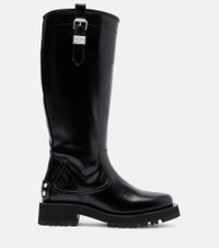 Copenhagen-based brand Ganni reshapes the meaning of Scandinavian style with its whimsy approach to design. The Studs knee-high boots owe their name to the embellishments at the heels and feature chunky lug soles and buckle details. Product Details - Upper: polyurethane, polyester, cotton - Lining: polyurethane, polyester, cotton - Sole: polyurethane, polyester (recycled) and cotton insole, rubber sole - Toe shape: round toe - Made in Portugal - Includes: shoe box, dust bag - Designer color name: Black - Item color: black - Hardware color: silver - Item number: P01043462 Size & Fit - True to size - Slightly narrow - Half sizes please take the next size up - European sizes - 3cm-1" platform (size EU 38) - 4,5cm-2" wedge heel (size EU 38) - 36cm-14" shaft height (size EU 38) - 40cm-15.5" shaft width (size EU 38) - shaft width measured on largest part of boot