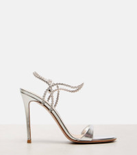 Crafted from materials of the highest quality, Gianvito Rossi’s designs are handmade using both traditional craftsmanship and innovative techniques. These sandals are Italian-made from metallic leather with striking crystal-embellished ankle straps and 105mm stiletto heels. Product Details - Upper: leather - Lining: leather - Sole: leather insole and sole - Toe shape: almond open toe - Made in Italy - Includes: dust bag, shoe box - Designer color name: Silver - Item color: silver - Item number: P01063435 Size & Fit - True to size - European sizes - 10,5cm-4" heel (size EU 38)