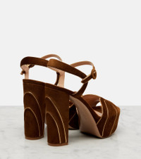 Metallic leather-trimmed suede platform sandals Tan