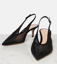 55 leather-trimmed organza slingback pumps
