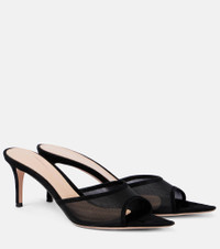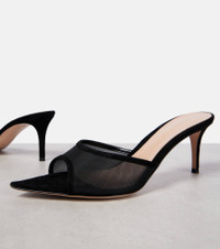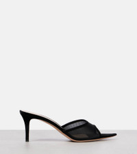 Crafted from materials of the highest quality, Gianvito Rossi’s designs are handmade using both traditional craftsmanship and innovative techniques. These sophisticated mules are rendered in suede-trimmed organza and feature the house's signature open pointed toes. They are set atop 70mm heels. Product Details - Upper: fabric - Lining: leather - Sole: leather insole and sole - Toe shape: round open toe - Made in Italy - Includes: shoe box, dust bags - Designer color name: Black + Black - Item color: black - Trim: leather (suede) - Item number: P01063483 Size & Fit - Fits slightly large to size - we recommend trying a half size smaller - Best fit for narrow feet - 7cm-3" heel (size EU 38)