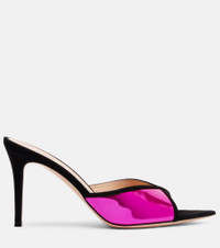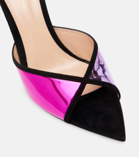 85 suede-trimmed metallic leather mules