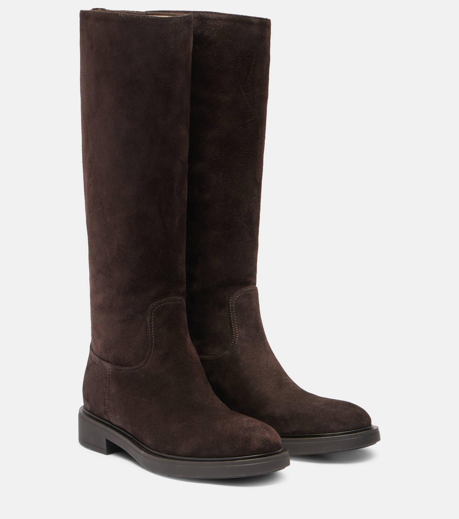 Crafted from materials of the highest quality, Gianvito Rossi’s designs are handmade using both traditional craftsmanship and innovative techniques. The Ascott boots are a classic knee-high style made in Italy from dark brown suede. Product Details - Upper: leather (suede) - Lining: leather - Sole: leather insole, rubber sole - Toe shape: round toe - Made in Italy - Includes: shoe box, dust bag - Designer color name: Moka - Item color: brown - Item number: P01063988 Size & Fit - True to size - European sizes - 3,5cm-1.5" heel (size EU 38) - 1,5cm-0.5" platform (size EU 38) - 39cm-15.5" shaft height (size EU 38) - 37cm-14.5" shaft width (size EU 38) - shaft width measured on largest part of boot