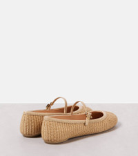 Carla leather-trimmed raffia Mary Jane ballet flats Neutral