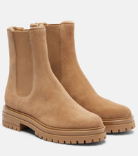 The Chelsea ankle boots from Gianvito Rossi are a timeless wardrobe essential. Handmade in Italy from smooth suede, this casual yet sophisticated pair features shearling lining, elasticated sides, and a rounded silhouette. Product Details - Upper: leather (suede) - Lining: shearling - Sole: shearling insole, rubber sole - Toe shape: round toe - Made in Italy - Includes: shoe box, dust bag - Designer color name: Camel+Camel - Item color: beige - Closure: elasticated sides - Item number: P01109398 Size & Fit - True to size - European sizes - 3cm-1" platform (size EU 38) - 5cm-2" wedge heel (size EU 38)