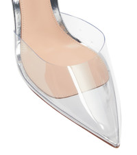 With transparent PVC uppers and dazzling crystal-embellished ankle straps, these pumps from Gianvito Rossi are worthy of a fairytale. They feature elegant pointed-toe profiles and rest on slender 105mm stiletto heels. Product Details - Lining: leather - Sole: leather insole and sole - Closure: ankle strap - Made in Italy - Comes with dust bag - Toe shape: pointed toe - Upper: leather, polyvinyl chloride - Comes with a box - Item number: P00763622 Size & Fit - True to size - European sizes - 11,5cm-4.5" heel (size EU 38)