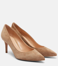 Handmade in Italy, the Gianvito pumps from Gianvito Rossi are crafted from suede with sleek pointed toes. Set atop 70mm heels, this pair reflects the brand's timeless style and impeccable craftsmanship. Product Details - Upper: leather (suede) - Lining: leather - Sole: leather insole and sole - Toe shape: pointed toe - Made in Italy - Includes: shoe box, dust bag - Designer color name: Camel - Item color: beige - Item number: P01105502 Size & Fit - Fits slightly large to size - we recommend trying a half size smaller - European sizes - 7cm-3" heel (size EU 38)
