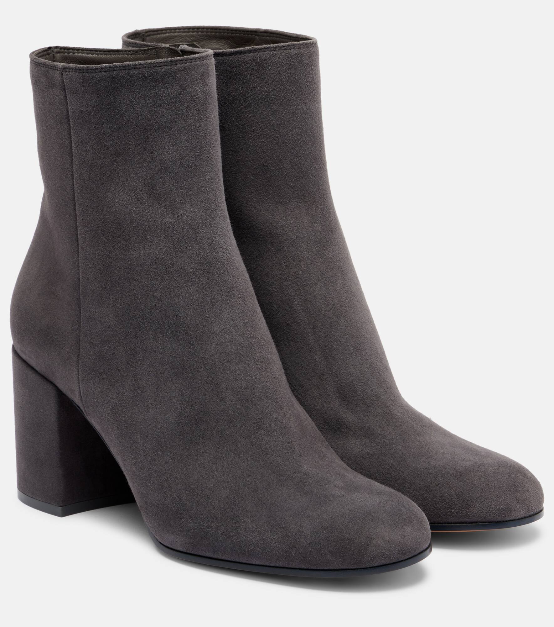 Crafted from materials of the highest quality, Gianvito Rossi’s designs are handmade using both traditional craftsmanship and innovative techniques. The Joelle ankle boots are made from velvety smooth suede with 70mm block heels and round-toe profiles. Product Details - Upper: leather (suede) - Lining: leather - Sole: leather insole and sole - Toe shape: round toe - Made in Italy - Includes: shoe box - Designer color name: Lapis - Item color: gray - Item number: P01096325 Size & Fit - True to size - European sizes - 7cm-3" heel (size EU 38)