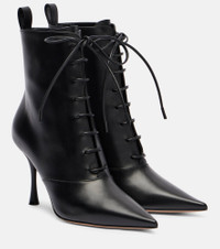 Crafted from high-quality leather, these boots from Gianvito Rossi feature a sophisticated lace-up silhouette with sharp, pointed toes. They rest atop slim stiletto heels and feature zipped fastenings at the sides. Product Details - Upper: leather - Lining: leather - Sole: leather insole and sole - Toe shape: pointed toe - Made in Italy - Includes: shoe box, dust bag - Designer color name: Black - Item color: black - Closure: zipped side - Item number: P01063978 Size & Fit - True to size - European sizes - 8,5cm-3.5" heel (size EU 38)