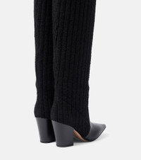 Leather-trimmed knee-high boots