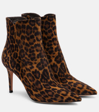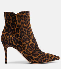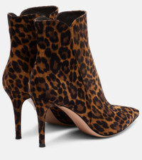 Gianvito Rossi is synonymous with Italian craftsmanship and modern elegance in footwear, and the Levy ankle boots are are a striking example. Crafted from suede in a bold leopard print, this pair is set atop 85mm stiletto heels. Product Details - Upper: leather (suede) - Lining: leather - Sole: leather insole and sole - Toe shape: pointed toe - Made in Italy - Includes: shoe box, dust bag - Designer color name: Almond Leopard Print - Item color: brown, black - Hardware color: gold - Closure: zipped side - Item number: P01106041 Size & Fit - True to size - European sizes - 8,5cm-3.5" heel (size EU 38)