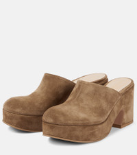 Create effortlessly chic ensembles around the Lyss clogs from Gianvito Rossi. Crafted in Italy from tactile suede, this pair features round toes, platforms, and 55mm block heels for all-day comfort. Product Details - Toe shape: round toe - Sole: leather insole, leather and rubber sole - Upper: leather - Made in Italy - Designer color name: Camel - Comes with dust bag - Item number: P00815322 Size & Fit - True to size - European sizes - 9,5cm-3.5" heel (size EU 38) - 3,5cm-1.5" platform (size EU 38)