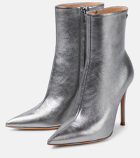 These ankle boots from Gianvito Rossi are made in Italy from metallic leather. The design comes with dangerously elegant pointed toes and sharp 105mm stiletto heels. Product Details - Closure: zipped side - Sole: leather insole and sole - Toe shape: pointed toe - Upper: leather - Designer color name: Steel - Made in Italy - Comes with dust bag - Item number: P00814644 Size & Fit - True to size - Narrow at the toe - European sizes - 10,5cm-4" heel (size EU 38)