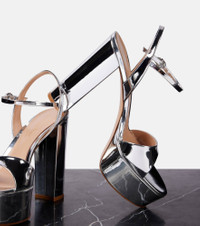 Product Details - Upper: leather - Lining: leather - Sole: leather insole and sole - Toe shape: round open toe - Made in Italy - Includes: dust bag, shoe box - Designer color name: Silver - Item color: silver - Item number: P01063451 Size & Fit - Fits slightly small to size - we recommend trying a half size larger - European sizes - 13cm-5" heel (size EU 38) - 5cm-2" platform (size EU 38)