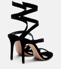 The Opera sandals from Gianvito Rossi are crafted in Italy from soft velvet and sit atop 105mm heels. The pair features round open toes and straps that gracefully wrap around the legs for a glamorous finish. Product Details - Upper: velvet - Lining: leather - Sole: leather insole and sole - Toe shape: round open toe - Made in Italy - Includes: shoe box, dust bag - Designer color name: Black - Item color: black - Item number: P01105937 Size & Fit - True to size - European sizes - 10,5cm-4" heel (size EU 38)