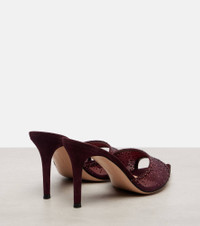 Crafted in Italy, the Rania mules from Gianvito Rossi feature crystal embellishments all over the straps. This design is finished with suede trims and leather insoles on pointed open-toe silhouettes. Product Details - Upper: fabric - Lining: fabric - Sole: leather insole and sole - Toe shape: pointed open toe - Made in Italy - Includes: shoe box, dust bags - Designer color name: Royale+Royale - Item color: purple - Contains non-textile parts of animal origin - Details: crystals - Item number: P01063478 Size & Fit - True to size - European sizes - 8,5cm-3.5" heel (size EU 38)