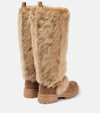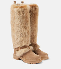 Shearling-trimmed suede knee-high boots