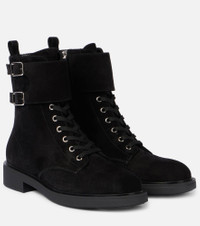 Crafted from materials of the highest quality, Gianvito Rossi’s designs are handmade using both traditional craftsmanship and innovative techniques. In smooth suede, these combat boots feature lace-up fronts and sturdy soles. Product Details - Upper: leather (suede) - Lining: leather - Sole: leather insole, rubber sole - Toe shape: almond toe - Made in Italy - Includes: shoe box, dust bag - Designer color name: Black - Item color: black - Hardware color: silver - Closure: zipped side, lace-up - Item number: P01063984 Size & Fit - Fits slightly large to size - we recommend trying a half size smaller - European sizes - 2cm-1" platform (size EU 38) - 3,5cm-1.5" wedge heel (size EU 38)